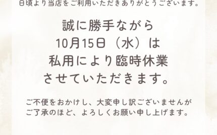CROSS hair × scalp2025年10月16日10月 16日(木) 営業時間 変更のお知らせ